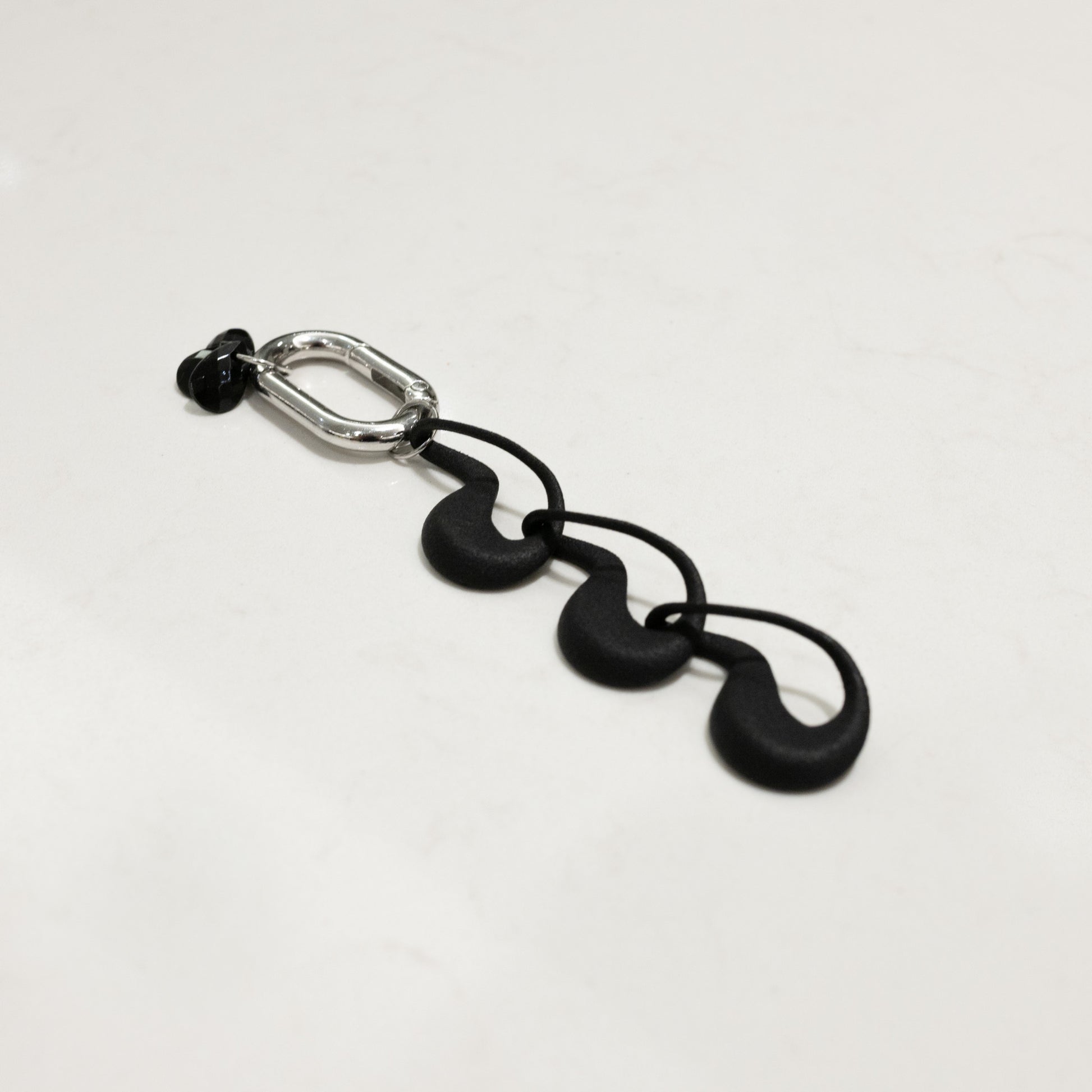 Crafted through SLS 3D printing in nylon PA12, Flow Chain II combines precision with lightness. The matte black surface absorbs light while the faceted noir cluster reflects it in controlled glints. Finished with a polished silver clasp, the piece embodies the atelierJJX dialogue between material discipline and sensual tactility - a sculptural object to be held, worn, or carried as a bag charm, where minimal geometry meets quiet ornament.