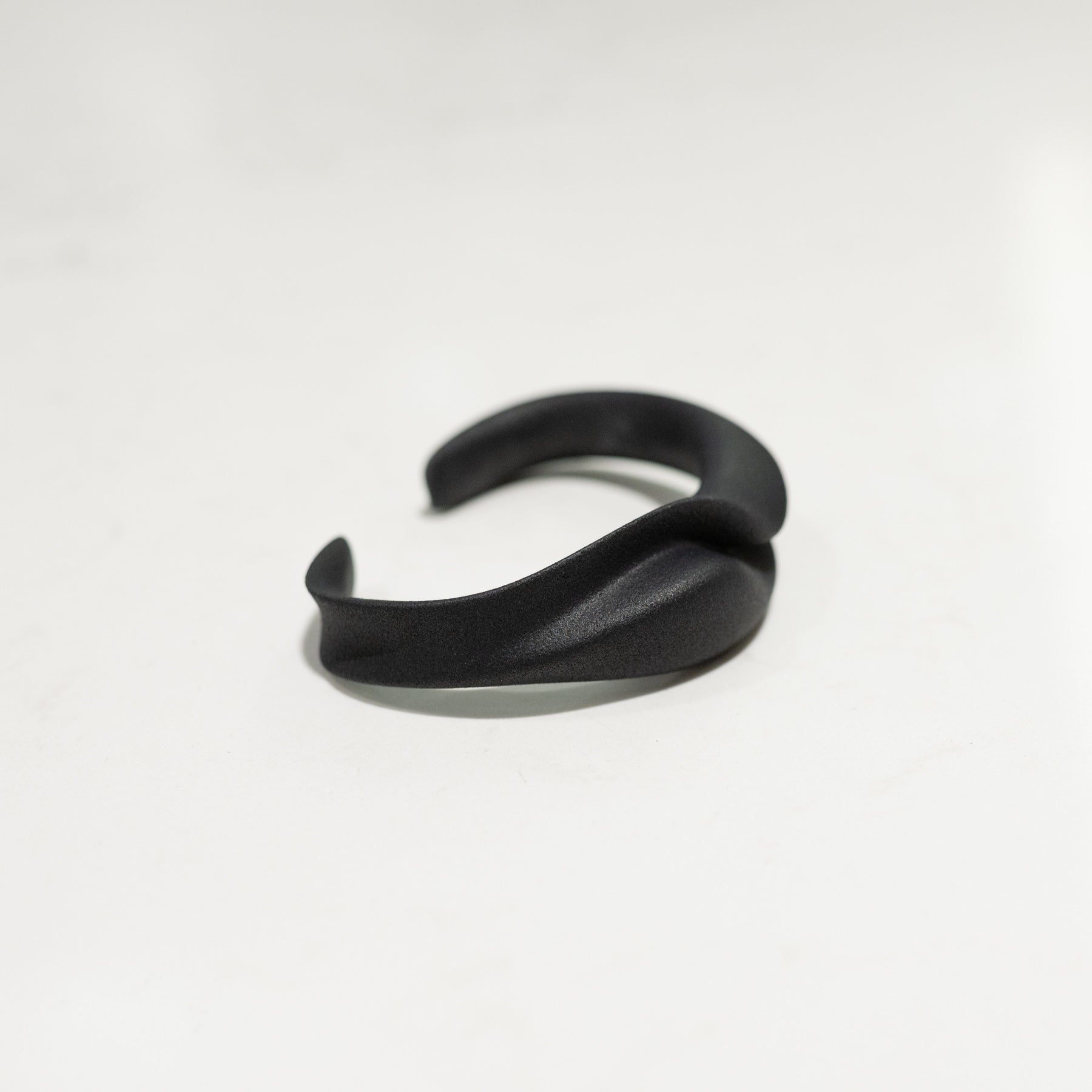 The Noa Bracelet flows like a wave around the wrist — a form in motion that carries both strength and softness. It wraps with quiet affection while its open sweep suggests freedom, a sculptural gesture that makes movement visible.